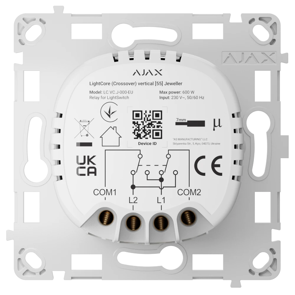 Вимикач світла Ajax LightCore (Crossover) vertical реле бездротовий сенсорний перехресний