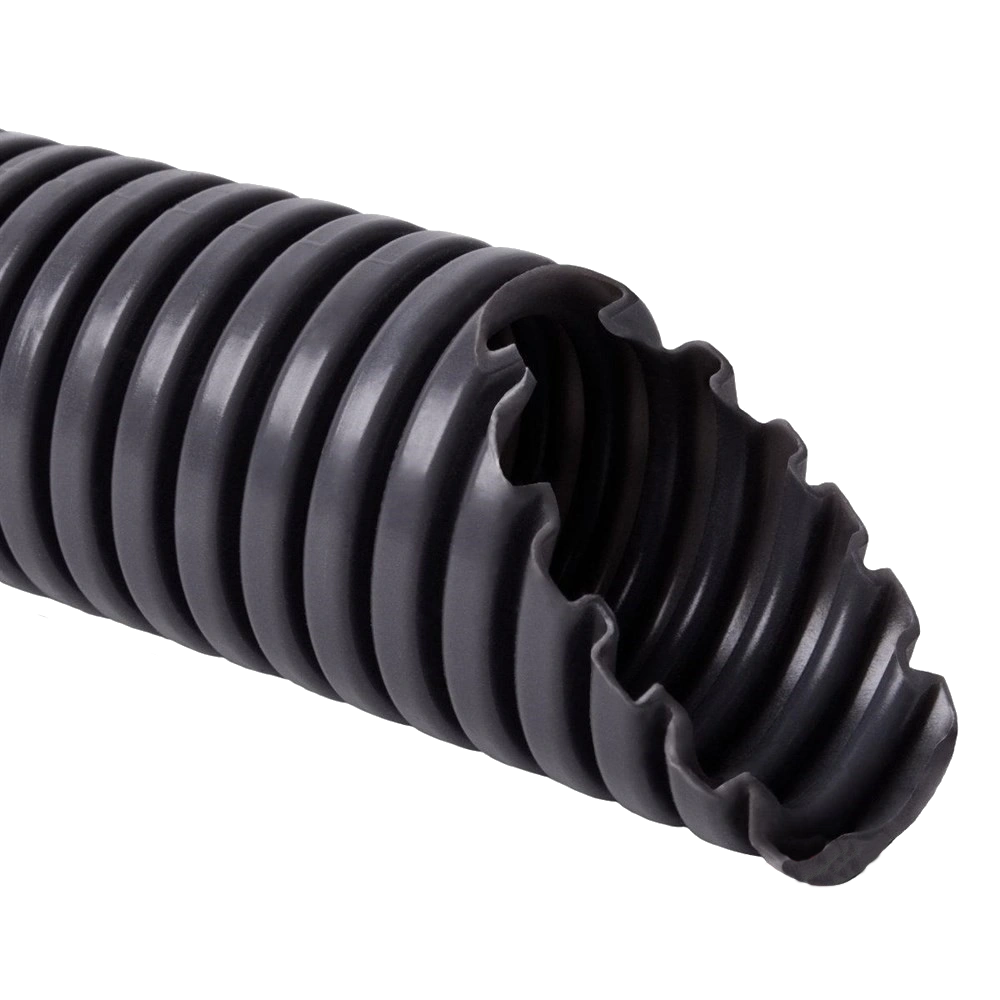 Гнучка пластикова гофрована труба (гофра) застосовується для монтажу прихованої електричної проводки. Підходить для встановлення на поверхні, у стяжці, під штукатуркою. Застосовується для монтажу в пустотілі стіни, штукатурені стіни та стелі. Для легкого та безпечного затягування кабелю в гофру, усередині неї протягнута сталева протяжка. Гофротруба виготовлена із самозагасаючого ПВХ стійкого до дії ультрафіолету, має механічну стійкість 320 N на 5см. Дозволяється установка в приміщеннях з можливістю вибуху горючих газів і парів зони 2, а також приміщення з можливістю вибуху горючого пилу зони 22.